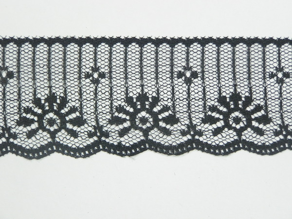 DESCRIPTION – MADE IN THE USA. 2" Flat Raschel Lace. Made of 100% Polyester.