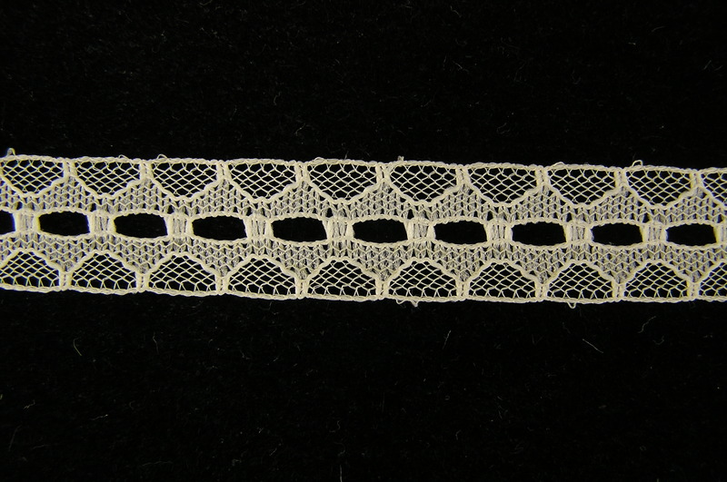 Item No. 1523 Ivory 570 Reg. price, $0.54 per yard NO FURTHER DISCOUNT ON THIS ITEM Description - 5/8 Inch Flat Insert / Beading Lace, Ivory. 100% Polyester. MADE IN USA.